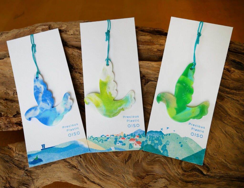 大磯町内で出たペットボトルキャップを再利用し、町の鳥であるアオバトをかたどったチャームを制作しています。大磯のアオバトは「大磯照ヶ崎のアオバト集団飛来地」として神奈川県の天然記念物に指定されており、地域を象徴する存在です。